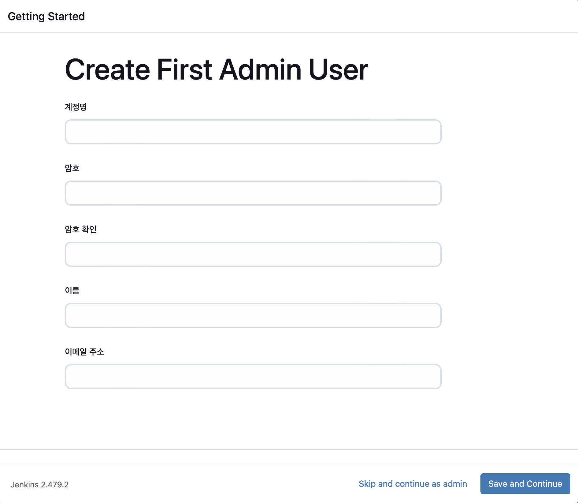플러그인 설치가 완료되면 jenkins에 접속할때 사용할 계정을 생성 또는 스킵할수있는데 간단한게 사용할 6anglebro 계정을 만들었다.